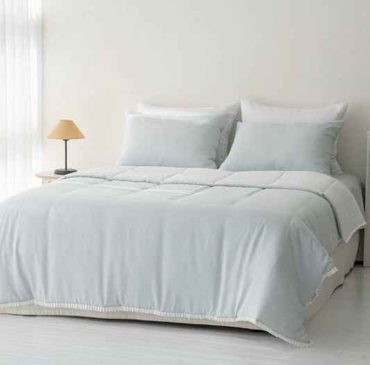 • 【韓國製雙面涼感+四季被|含雙人size】高級感木耳邊雙面被