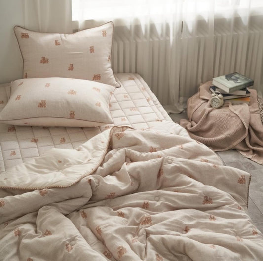 【韓國製四季被】熊啤啤小格仔四季薄被 100%天絲