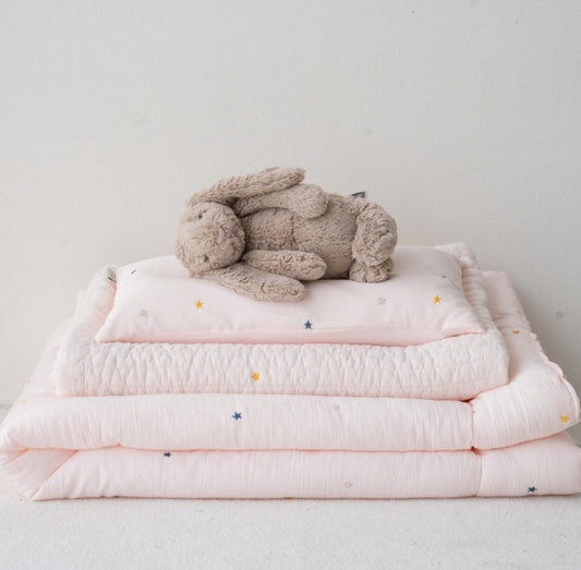 【韓國製小寶寶套裝】簡約星星100%天絲套裝(枕頭+床墊+被)