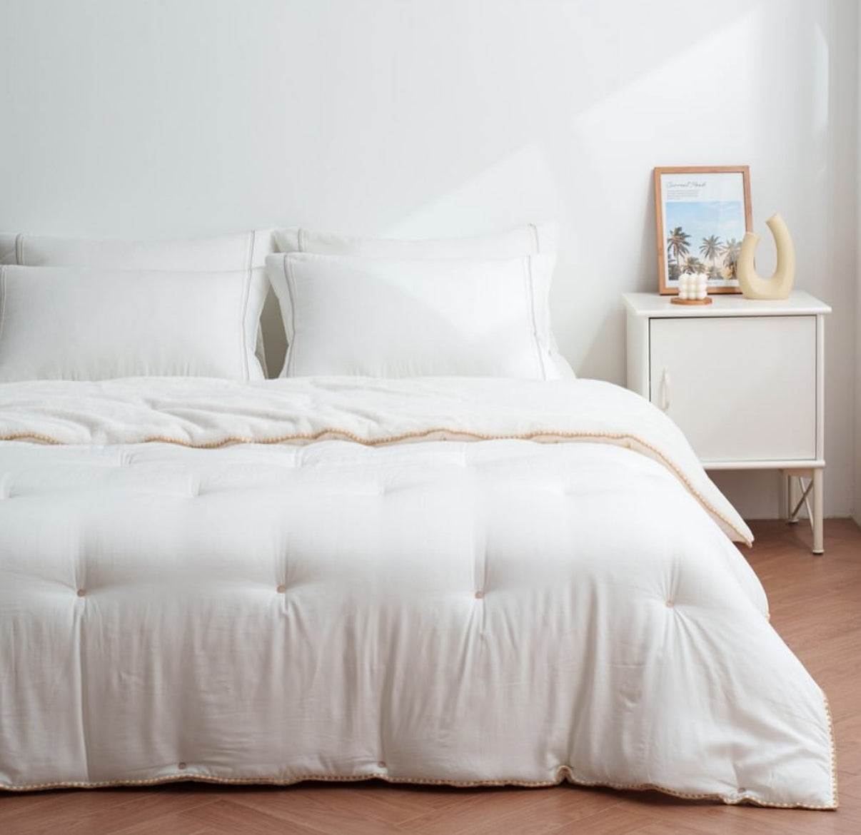 ☁️屬於冬被,呢款因為有毛毛關係,所以會比起四季厚被更暖。正面係100%天絲,雙面製造,怕凍人士必入