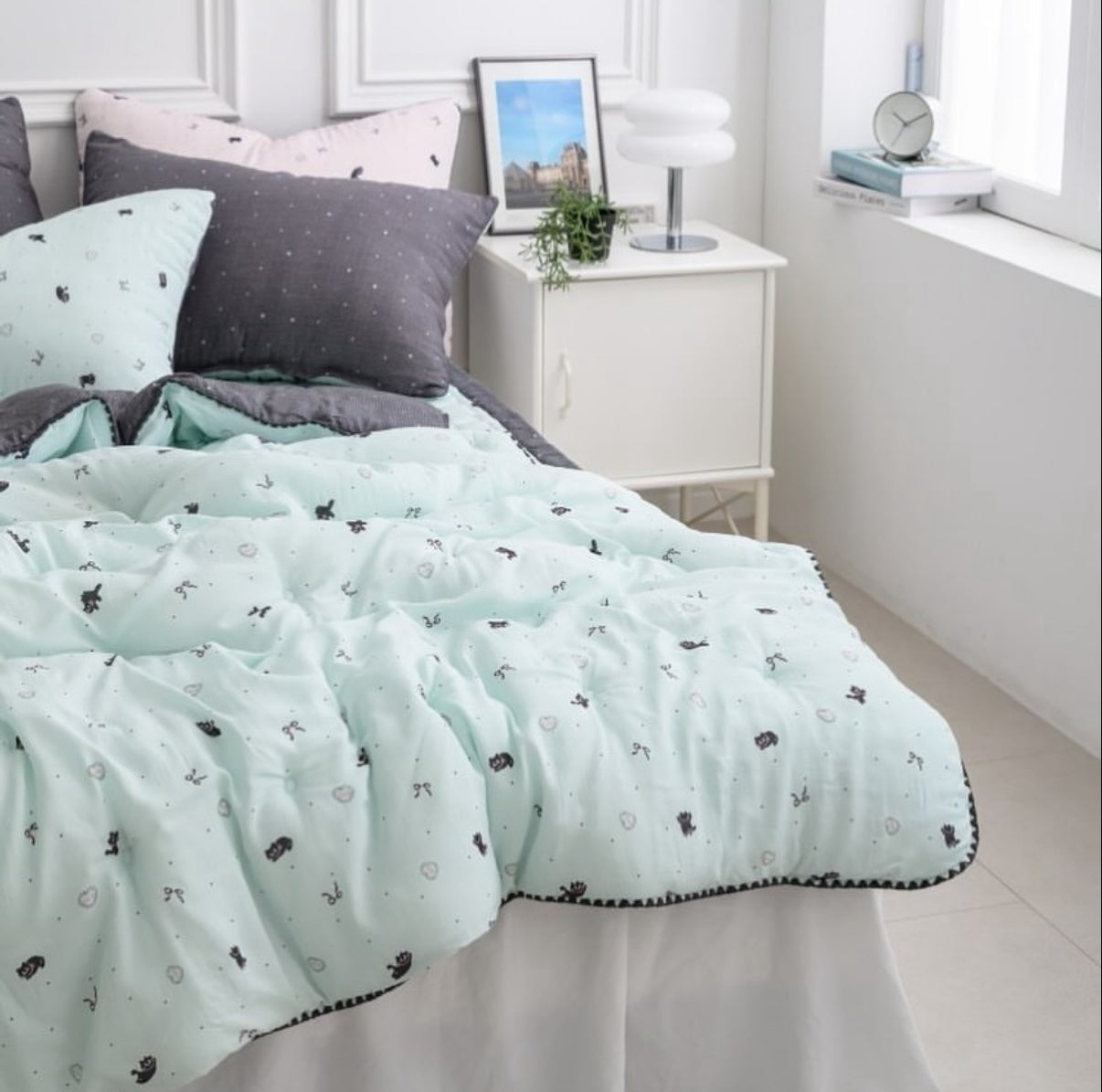 ✅100%天絲 ✅韓國製造 ✅粟米纖維抗菌、防塵蟎、防臭 ✅可愛包邊設計 ✅雙面設計