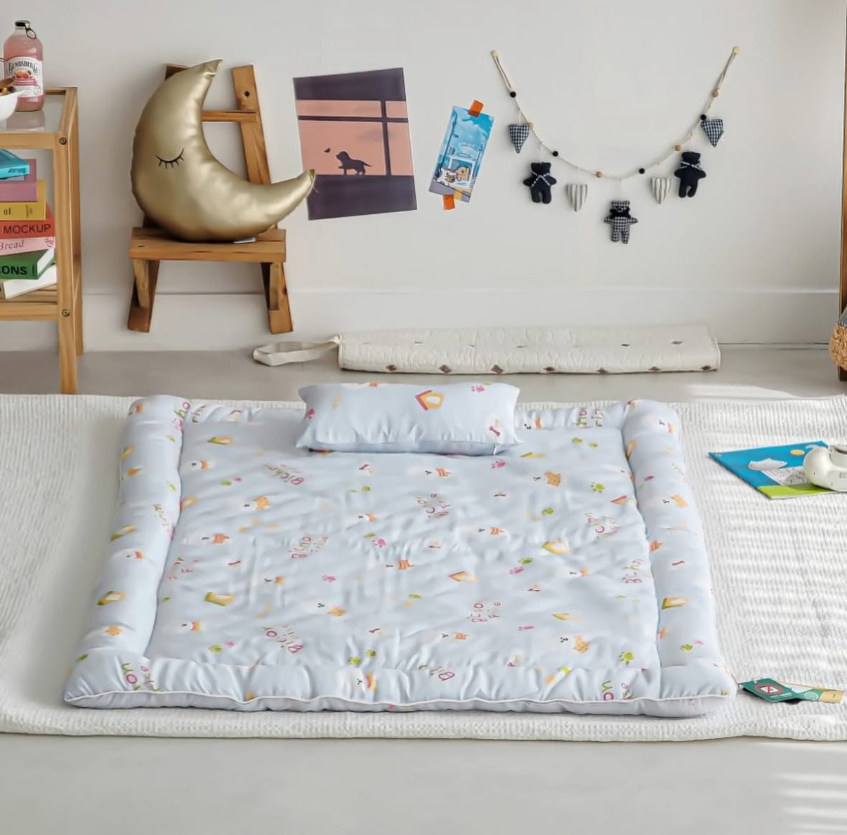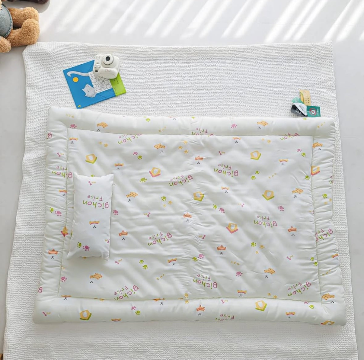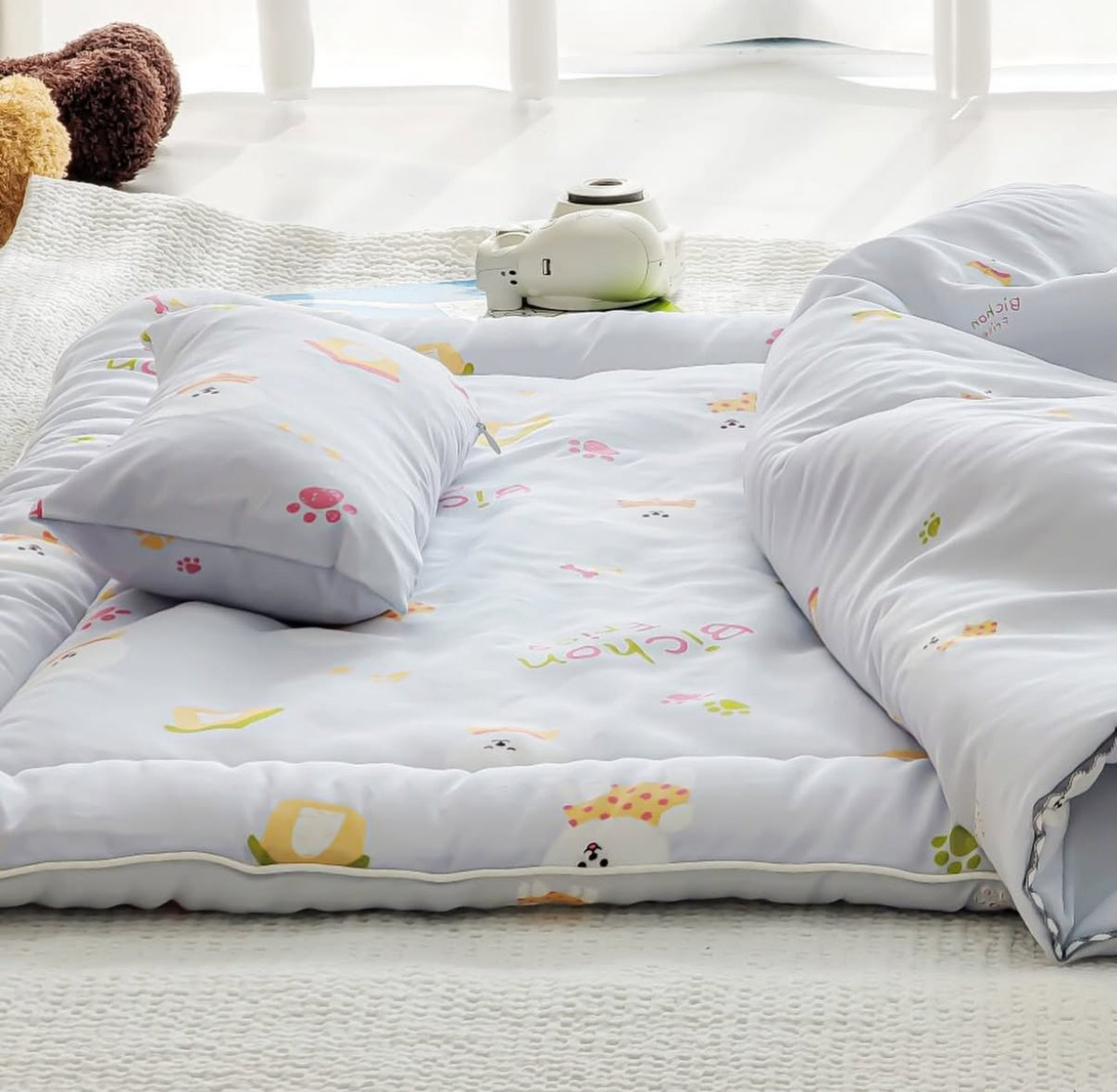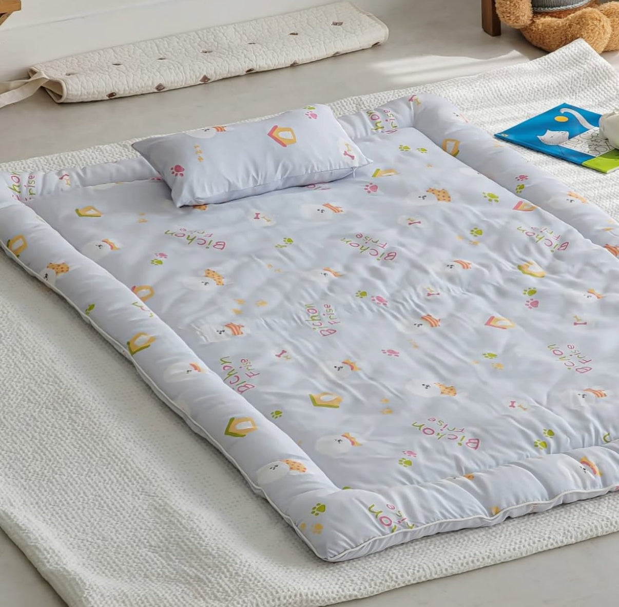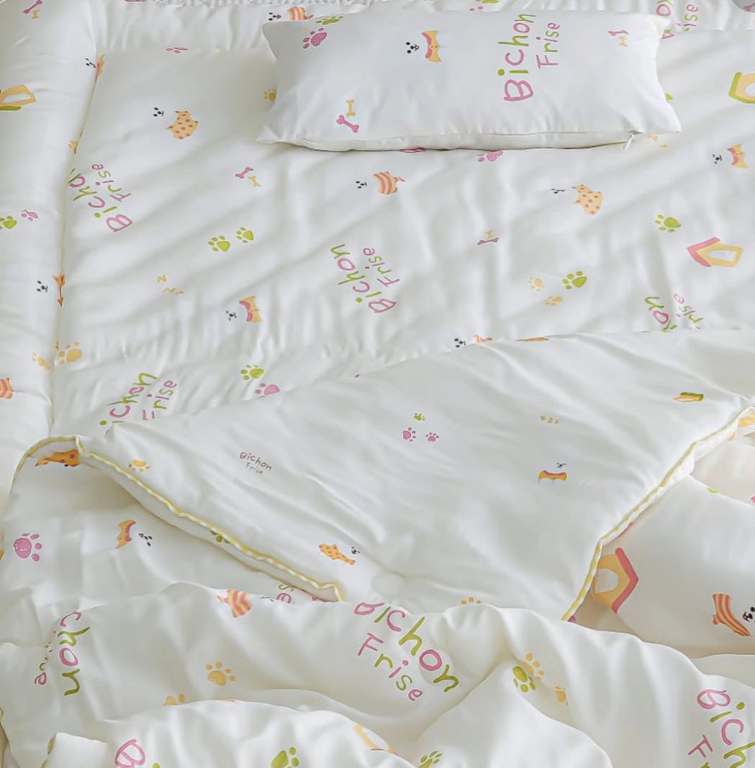 【韓國製小寶寶套裝】可愛小狗100%天絲套裝(枕頭+床墊+被)